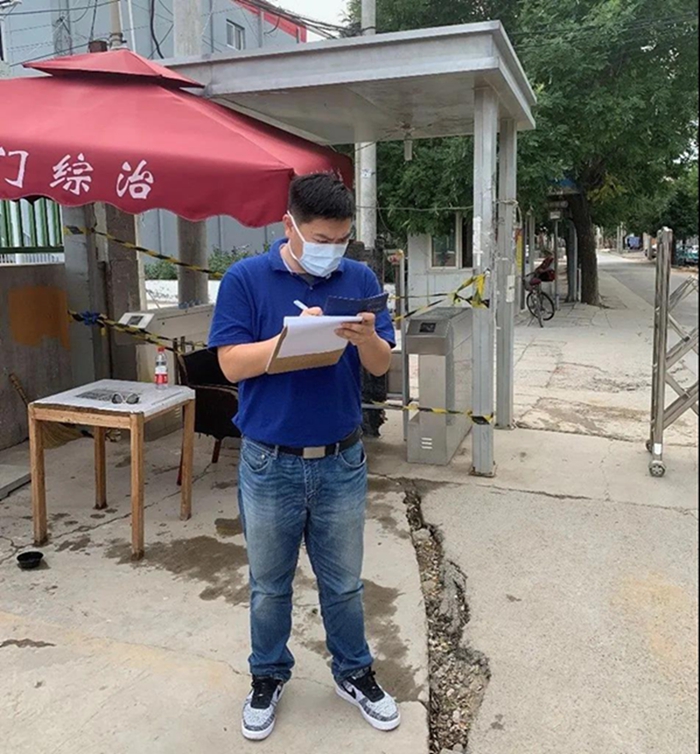 新發(fā)地批發(fā)市場(chǎng)是疫情的源發(fā)地,作為離此較近村子的下沉干部,我們勇挑抗疫重?fù)?dān)。雖然是二次下沉,看似都是老工作,但責(zé)任與壓力卻與第一次不可同日而語(yǔ)。為了控制住疫情,我們跟隨村委工作人員一起調(diào)整狀態(tài),認(rèn)真摸底排查。在那最緊張的日子里,我和同事們幾乎盯在卡口處,我們分工合作,測(cè)體溫、登記、查驗(yàn)出入證……一天下來(lái),真是腰酸背痛,但在我們的努力下,村民們自我防護(hù)意識(shí)不斷增強(qiáng),絕大部分村民都能主動(dòng)配合我們的檢查,我們的工作也輕松了許多。