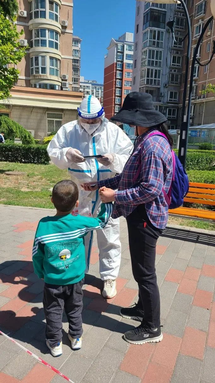 5月的天氣,溫度說升就升,每天2次4個小時的防護服穿下來,下崗時每每全身濕透,但我一點也不后悔,看著手機里每次錄入600人、700人、800人等的信息時,內心升起一種無比的自豪,北京全員核酸檢測里有我的一份汗水。