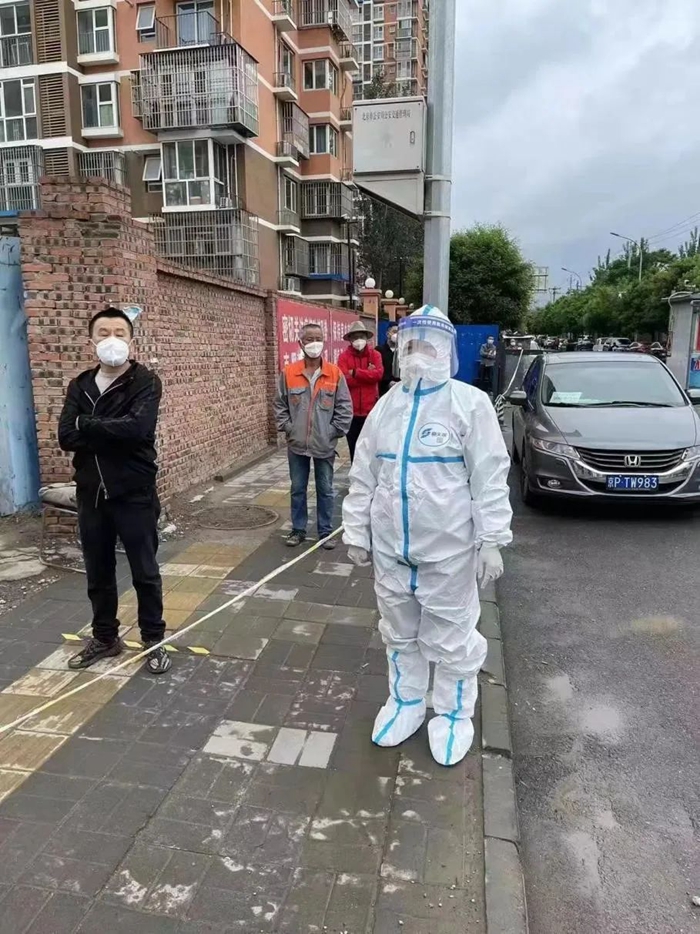 眼看天氣越來越熱,北京出現連續高溫,為更好地保護負責檢測的醫護和社工人員,社區決定下午一點停止檢測,可是這個舉動開始并不被居民們理解,往往到了一點之后還是有人陸陸續續前來測核酸。每每這個時候,我總會站到隊尾向大家解釋,告訴他們坐在隔離艙內檢測人員的不容易,請大家換位思考給予諒解。雖然有時會面對許多質疑的聲音,但我依舊會保持一份熱情、一份理解、一份關愛,因為我堅信,這身防護服帶給我的是榮耀、是真真切切為人民服務的標識。現在,居民們漸漸理解了工作人員的不易,我也感受到了居民們的通情達理和關愛。