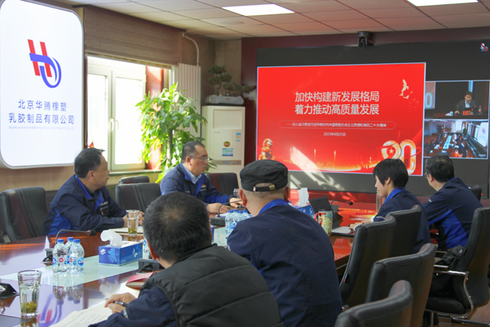 華騰橡塑黨委以主題教育讀書班為抓手,積極參加集團黨委組織的廠處級領導干部學習黨的二十大精神輪訓班。在讀原著學原文悟原理的同時,計劃到香山革命紀念館參觀學習,并安排到所屬北京瑞京乳膠制品有限公司開展調研工作。此次調研,圍繞醫用手套市場需求下降,市場競爭形勢嚴峻的客觀事實,分析瑞京公司生產經營工作中面臨的問題,攻克發展難題,為瑞京公司二季度生產經營工作提供指導。