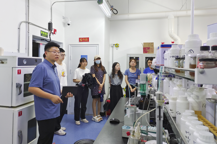 隨后,在總工程師崔正的帶領(lǐng)下,師生參觀了華騰新材辦公場所、產(chǎn)品陳列、實驗室等,促進了學(xué)生們對理論知識與生產(chǎn)應(yīng)用相結(jié)合的感知,也對實驗室安全管理有了更加直觀的認(rèn)識。
