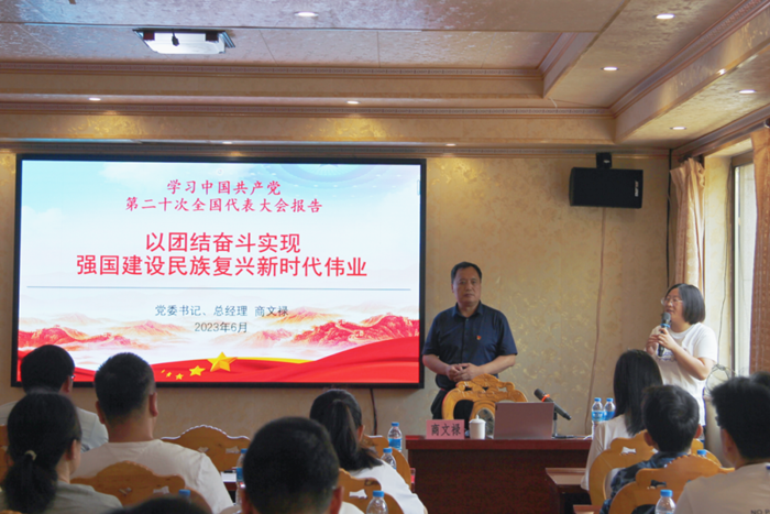 李磊還以本次主題教育專題黨課為契機,為進一步統(tǒng)一公司干部職工思想認(rèn)識,凝聚實干擔(dān)當(dāng)促發(fā)展的堅強力量進行了形勢任務(wù)教育,并向黨員同志和干部職工介紹了公司發(fā)展成果和下一步工作計劃。