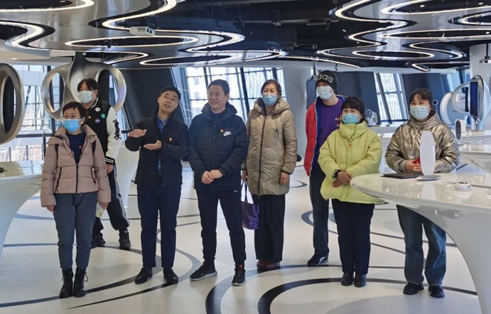 麗澤商務區以智慧設備設施等多個智慧應用為業務支撐體系,形成多種場景一體式智慧服務輸出模式,全面提升用戶的服務體驗。此次參觀的麗澤SOHO,是一座商業辦公綜合體,其中位于頂層的麗澤云客廳,于2023年6月列為主題教育教學點。
