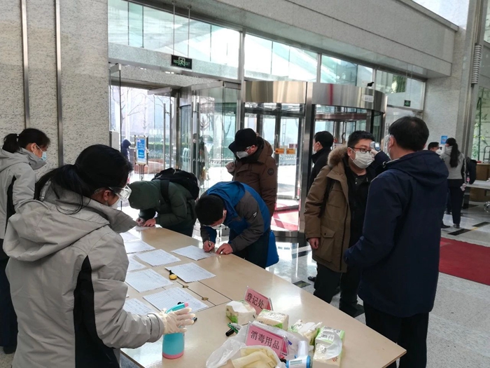 2月8日,東城區(qū)安全生產(chǎn)監(jiān)察、社區(qū)警務(wù)工作站、樓宇工作站聯(lián)合對(duì)拓展公司燈市口商務(wù)樓疫情防控工作進(jìn)行檢查。商務(wù)樓自1月24日開始啟用《樓內(nèi)進(jìn)入人員的體溫和進(jìn)出事由登記表》,2月3日起統(tǒng)計(jì)《客戶上班、返京情況和基礎(chǔ)信息表》,制定《復(fù)工后疫情防控期間工作方案》等文件材料。經(jīng)過(guò)認(rèn)真深入的檢查,檢查組對(duì)項(xiàng)目部全面有序的防控工作給予了充分肯定,同時(shí)就向返京客戶人員下發(fā)《健康承諾書》等后續(xù)事項(xiàng)提出明確工作要求。