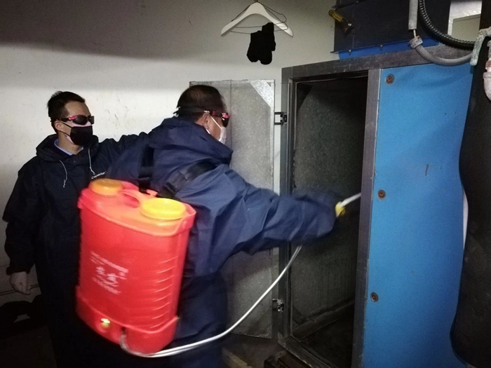 在大廈大堂,公司黨總支書記、總經(jīng)理、副總經(jīng)理、運(yùn)營(yíng)總監(jiān)現(xiàn)場(chǎng)協(xié)調(diào)指導(dǎo),及時(shí)與公司辦公室溝通物資供應(yīng),事業(yè)部班子成員現(xiàn)場(chǎng)指揮調(diào)度,中控操作、樓內(nèi)保潔消毒、空調(diào)消毒、客戶服務(wù)等各方面工作緊張有序推進(jìn)。