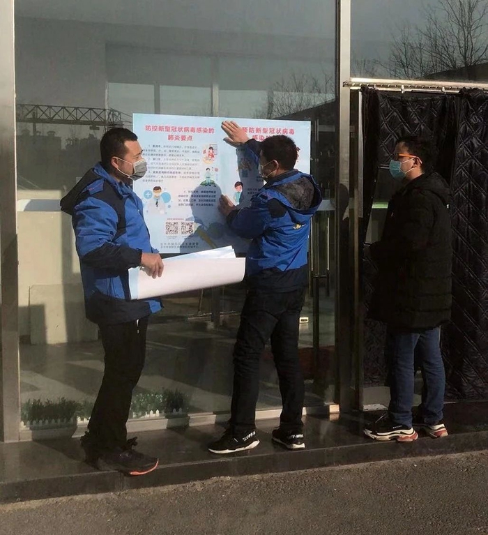 2月3日,北搪商務(wù)大廈商務(wù)中心的全體員工,在負(fù)責(zé)人朱娜的帶領(lǐng)下,檢查并協(xié)助物業(yè)管理公司對(duì)辦公區(qū)域進(jìn)行消毒和清潔,對(duì)12層以下的客戶進(jìn)行摸底排查,挨家挨戶進(jìn)行在崗人數(shù)調(diào)查并記錄上報(bào)事業(yè)部,在暫時(shí)無(wú)人辦公的客戶門上張貼關(guān)于做好疫情防控的緊急通知,同時(shí)以電話或微信方式,將通知有關(guān)內(nèi)容傳達(dá)給客戶,提示加強(qiáng)對(duì)去往疫情高發(fā)地區(qū)及接觸過(guò)疫情高發(fā)區(qū)的員工的教育,做好相應(yīng)隔離防護(hù)措施,隨時(shí)溝通各自單位的防疫工作的最新動(dòng)態(tài)。