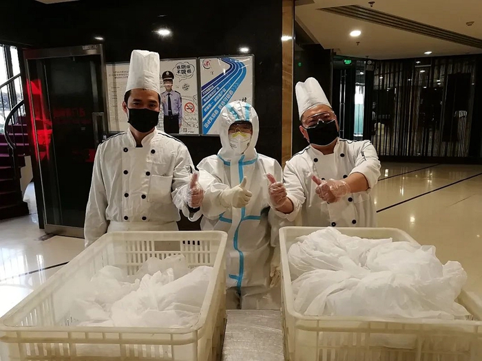 此次專項任務最關鍵的環(huán)節(jié),就是送餐和收納生活垃圾。接送餐飲,收納垃圾都在每個房間的門口。當送餐和收納垃圾這一艱巨任務擺在大家面前的時候,東方賓館的同志們沒有退縮,紛紛要求接下這一任務,特別是共產(chǎn)黨員、餐飲部經(jīng)理周麗麗,共產(chǎn)黨員、辦公室主任張艷紅,強烈要求主動上崗。賓館黨支部考慮到周麗麗專業(yè)性更強,最終決定由她來負責每天的送餐和生活垃圾收納工作。