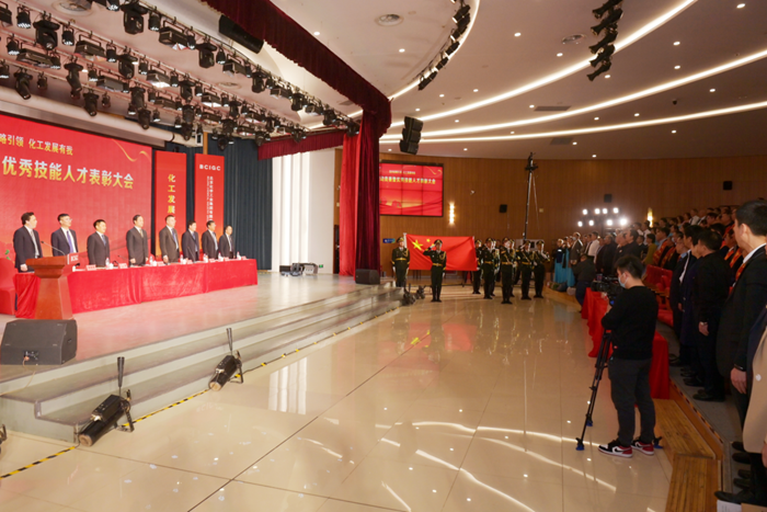 表彰大會在全體干部職工迎國旗、唱國歌中隆重開幕。