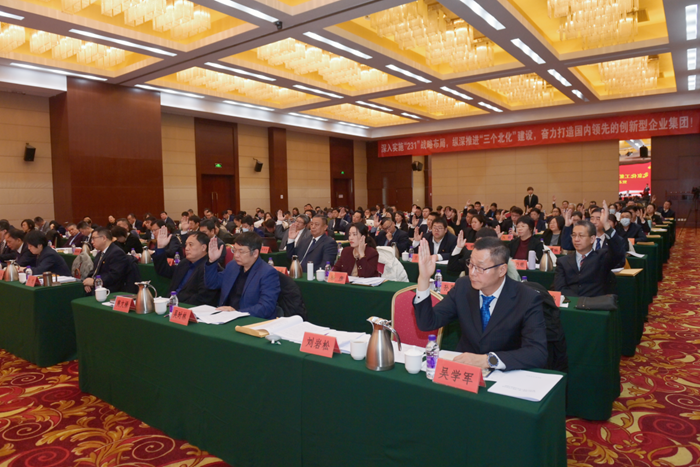 楊旭輝以《深入實(shí)施“231”戰(zhàn)略布局 縱深推進(jìn)“三個(gè)北化”建設(shè) 奮力打造國內(nèi)領(lǐng)先的創(chuàng)新型企業(yè)集團(tuán)》為題作工作報(bào)告。