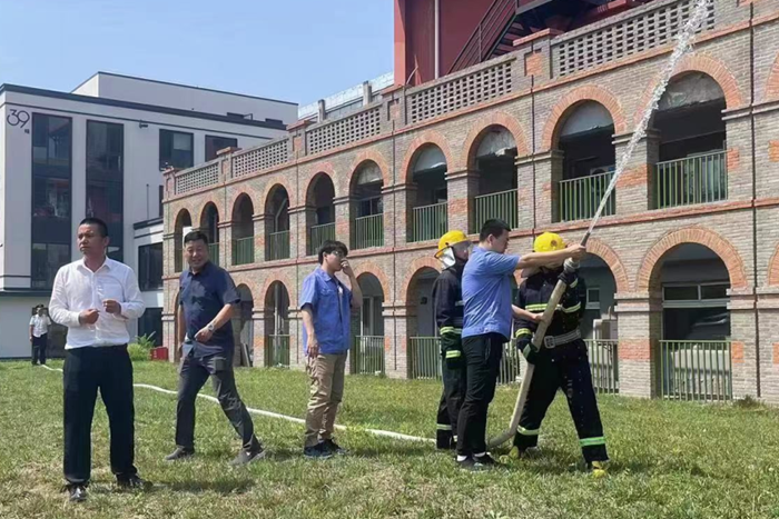 為貫徹落實北京化工集團安全生產月有關工作部署,推動全員參與火災防控、壯大群防群治力量,有效提升園區消防應急協同處置能力, 6月16日上午,華騰易心堂文創園消防培訓、演練活動在園區公寓前廣場舉行。此次活動由華騰丹陛華和易心堂公司共同組織,參加人員包括房地產公司、華騰丹陛華、易心堂公司、榮源物業公司以及園區入駐企業代表等共計70余人。